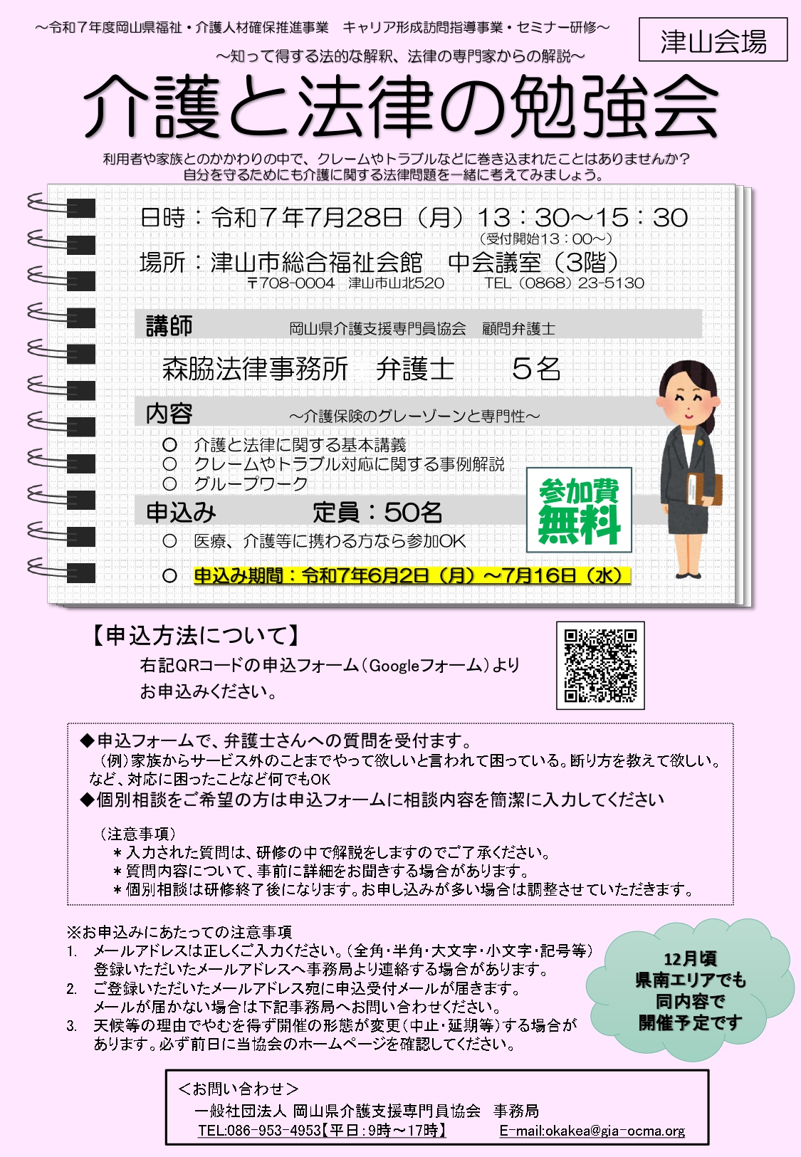 【研修会情報】介護と法律の勉強会(津山会場)(令和7年7月28日開催)