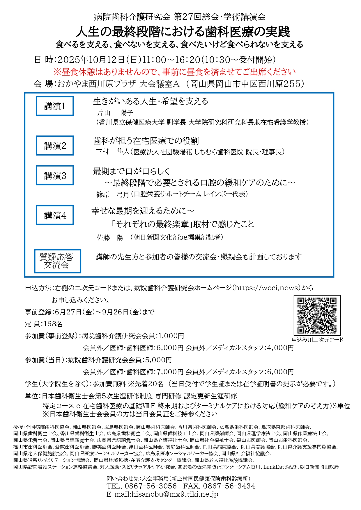 【お知らせ】「病院歯科介護研究会 第27回総会・学術講演会」開催について