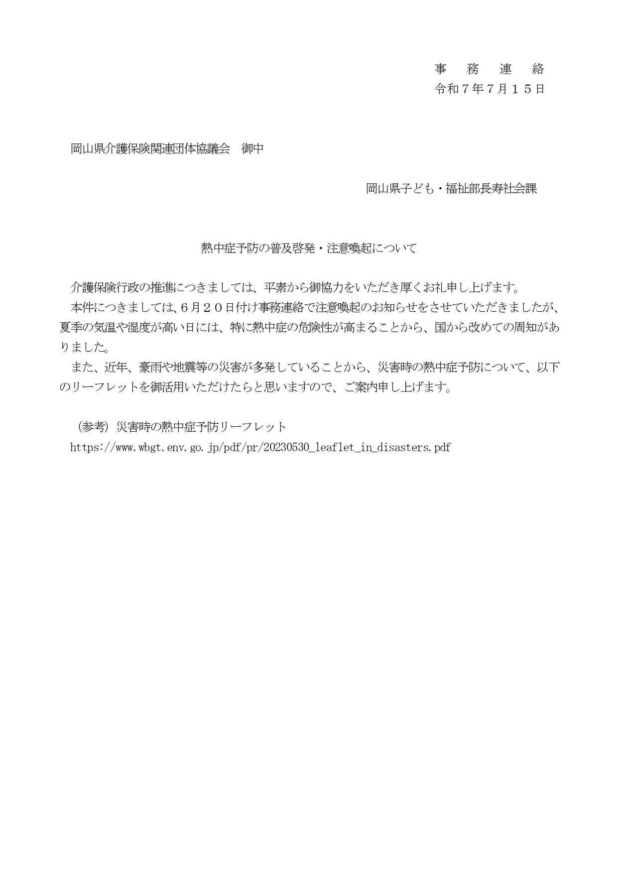 【岡山県より】熱中症予防の普及啓発・注意喚起について