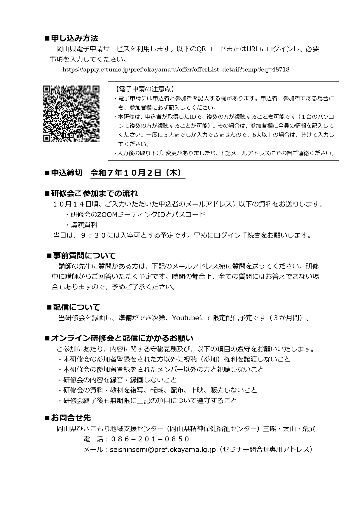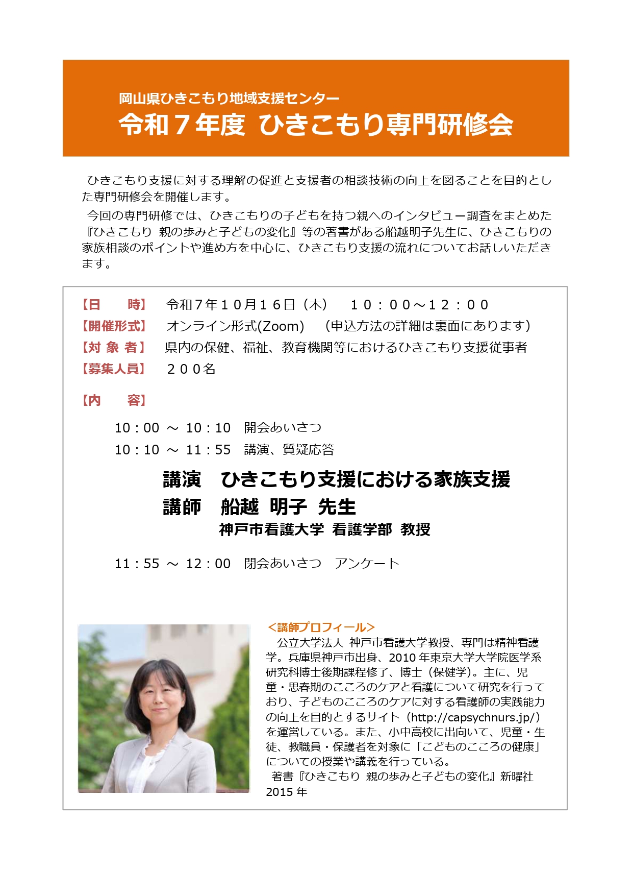 【お知らせ】「令和7年度 ひきこもり専門研修会」開催について
