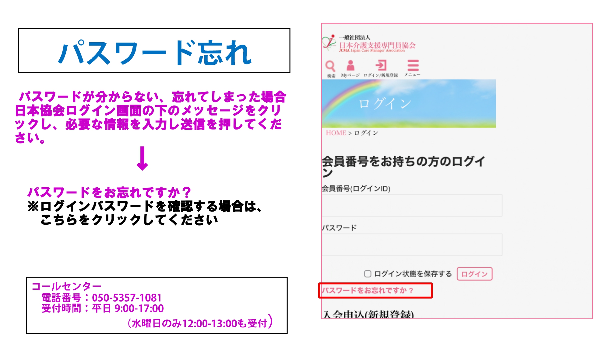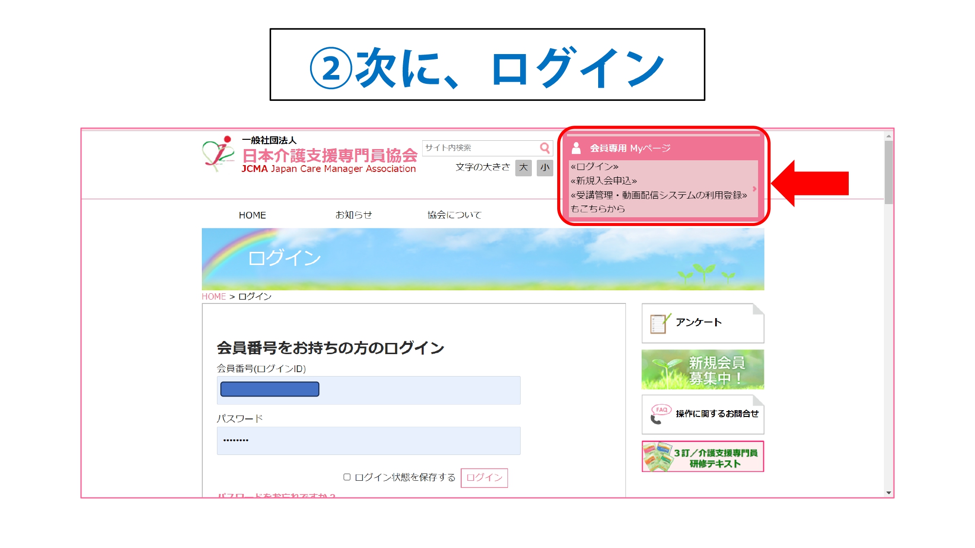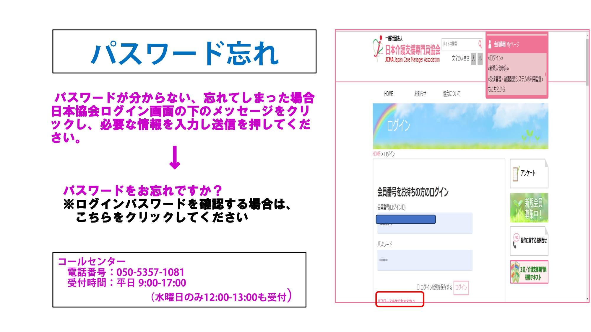 新しく入会もしくは再入会をされた方で日本介護支援専門員協会のホームページへ