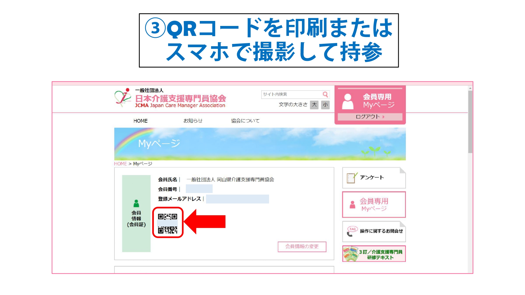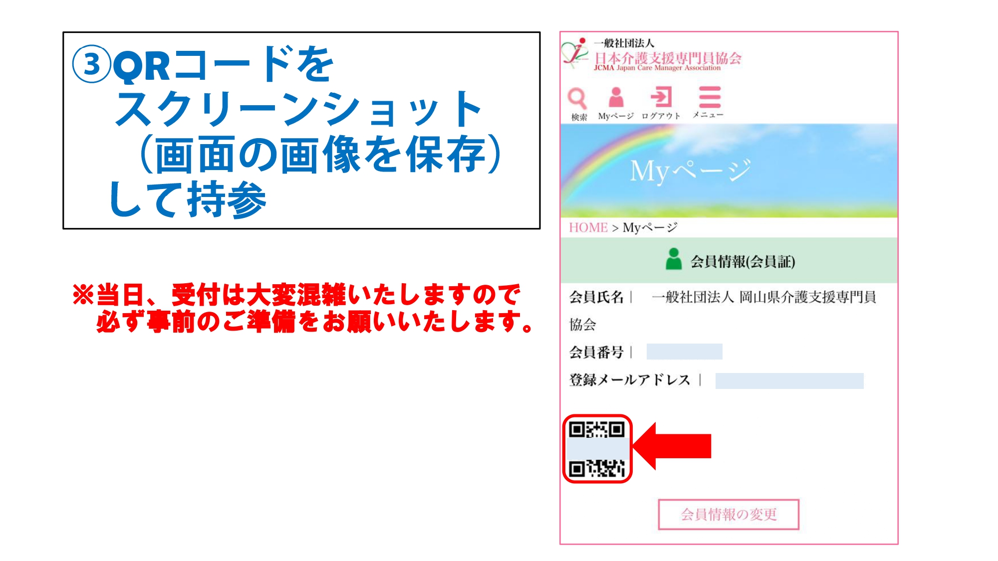 第7回ケアマネジャー大会に会場参加の皆様は当日までに会員QRコードの取得をお願いいたします。