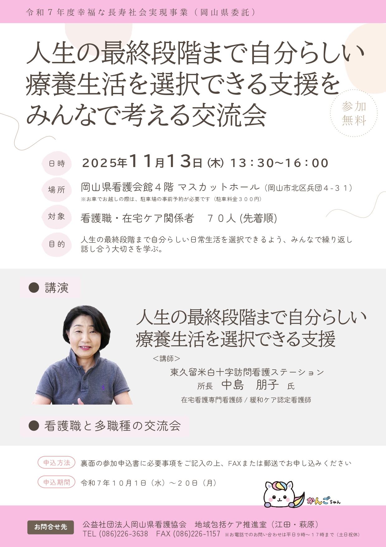 【ご案内】「人生の最終段階まで自分らしい療養生活を選択できる支援をみんなで考える交流会」開催について