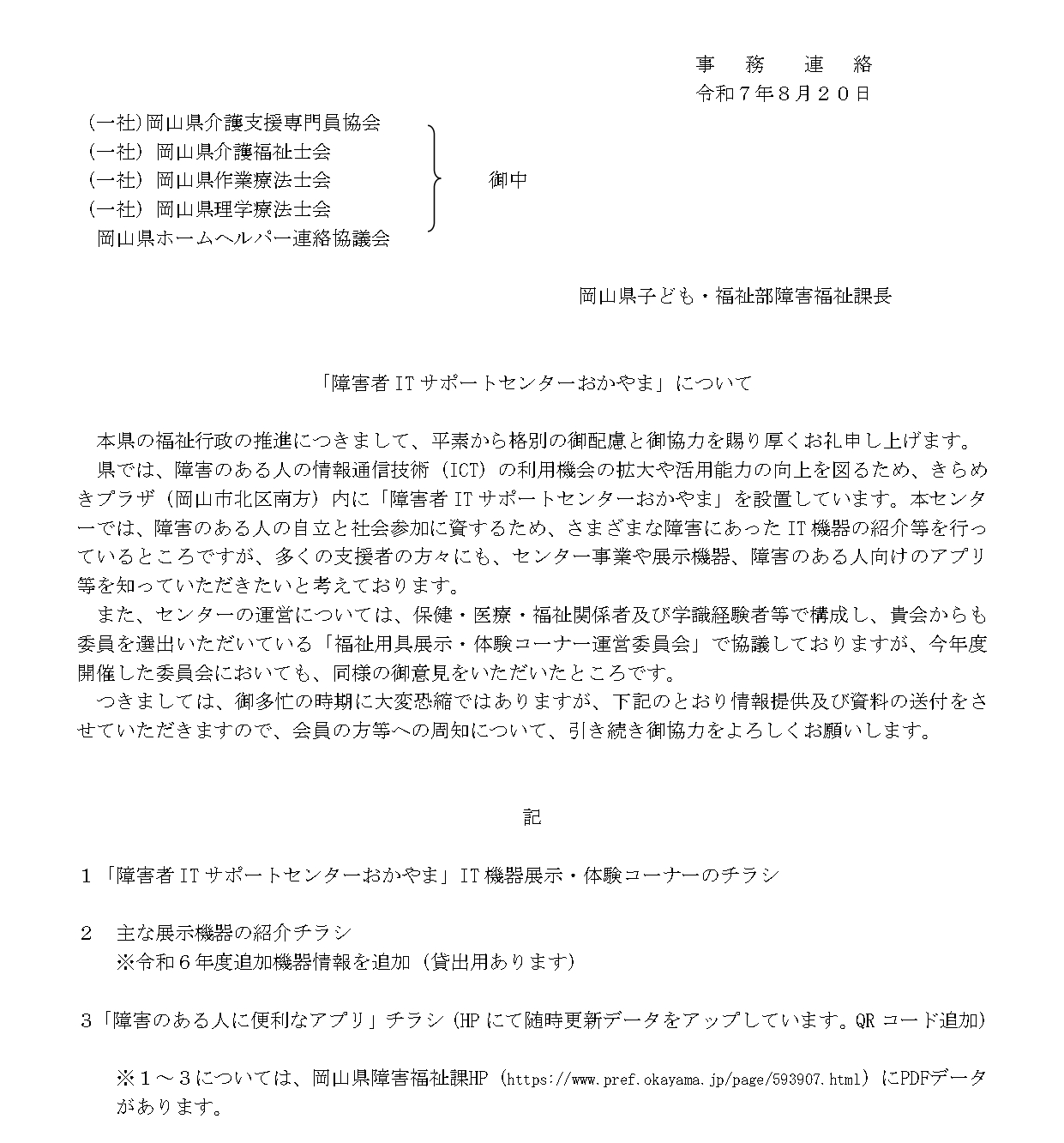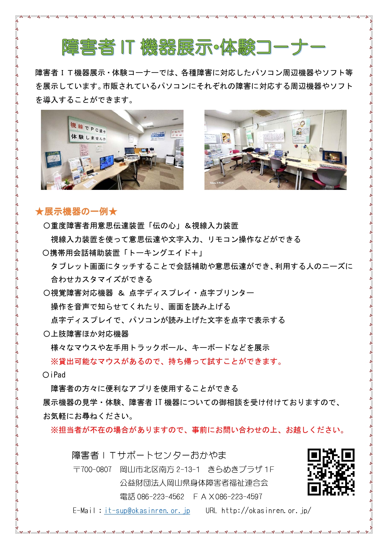 【ご案内】「障害者ITサポートセンターおかやま」について