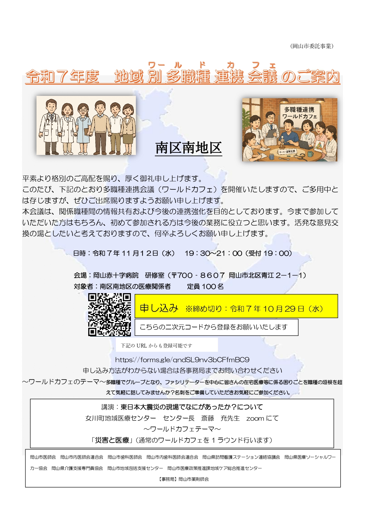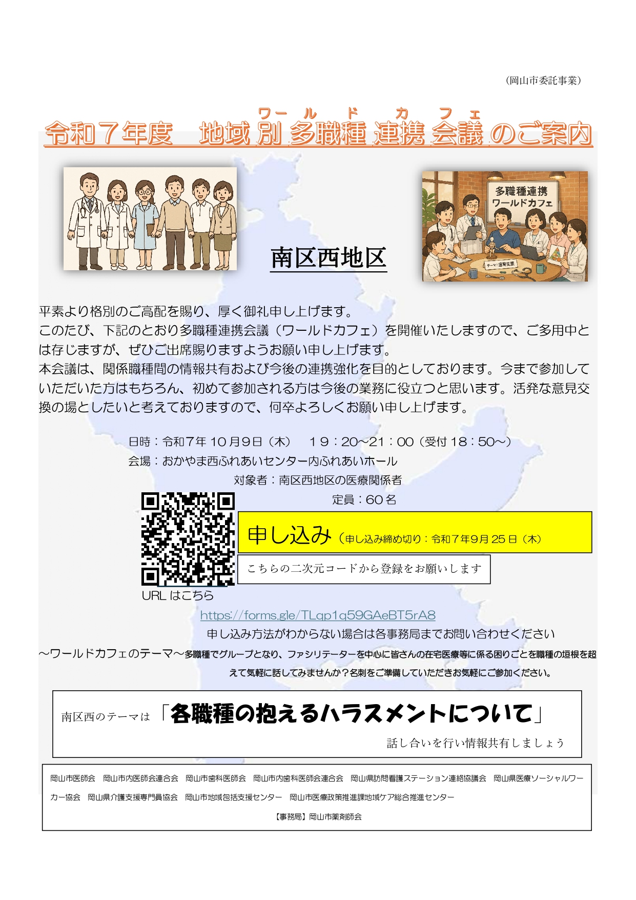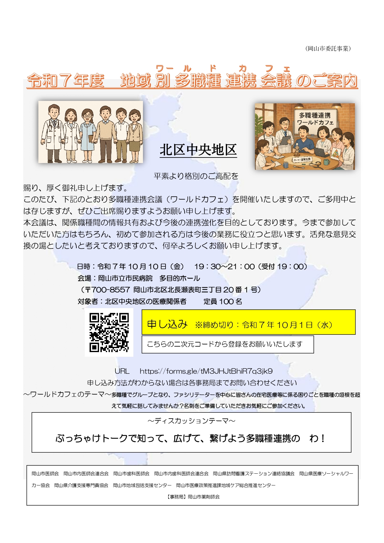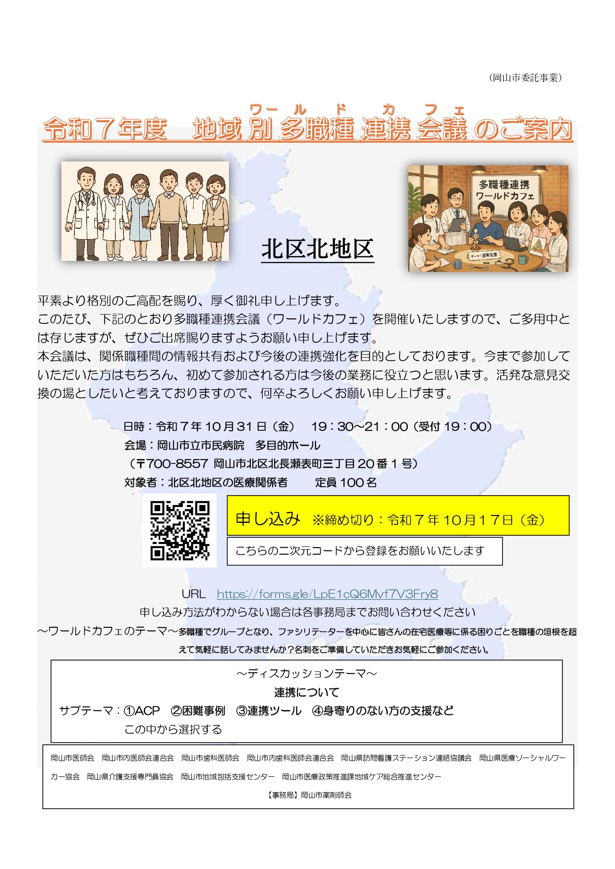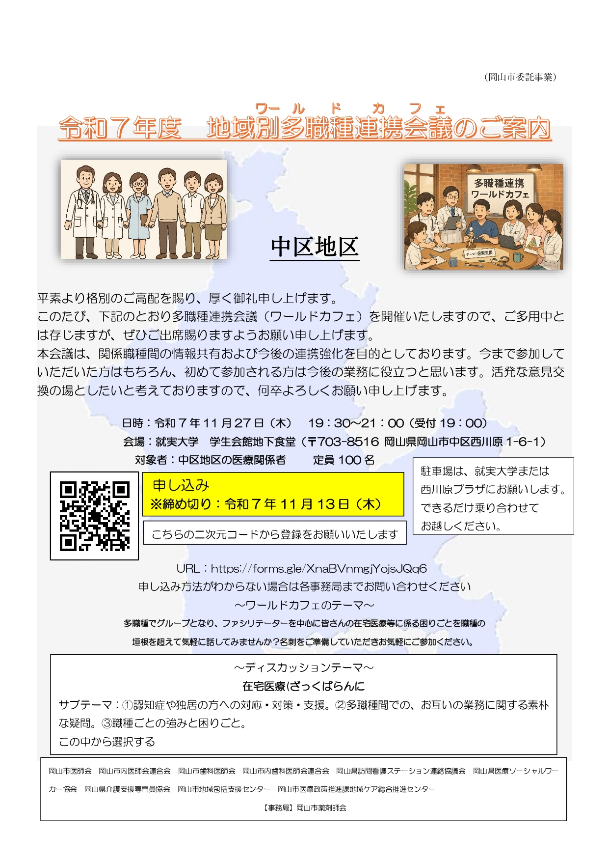 【岡山市】令和7年度 多職種連携会議(ワールドカフェ)のご案内