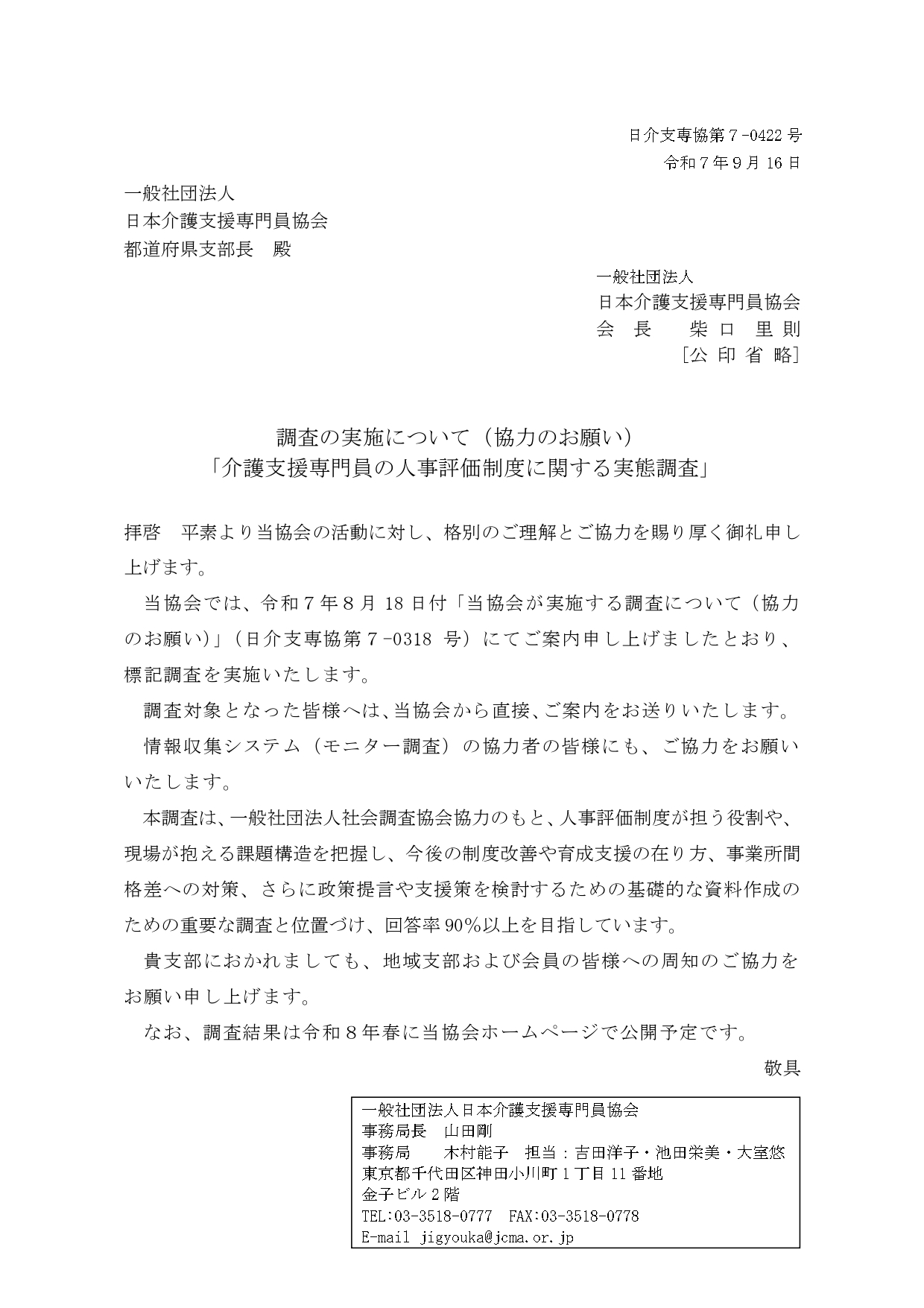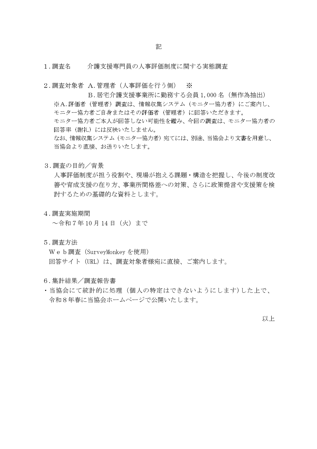 【ご案内】「介護支援専門員の人事評価制度に関する実態調査」について