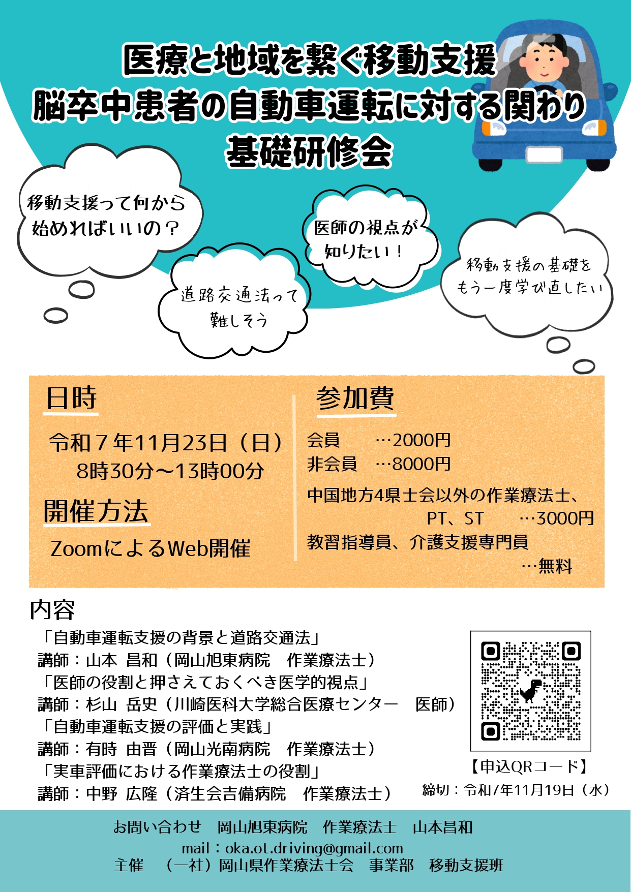 【ご案内】岡山県作業療法士会主催「脳卒中患者の自動車運転に対する関わり 基礎研修会」開催について