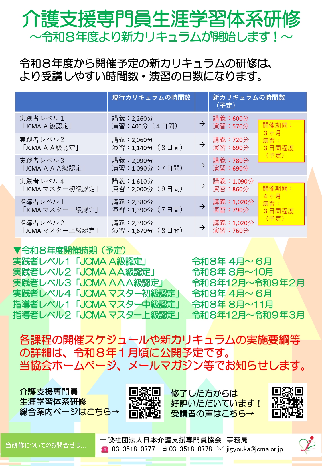 現カリキュラムも受講者からは大変ご好評の声をいただいているところですが、研修内容をさらに精査し、演習日数をまとめることで、受講者の負担を減らすことを目的とした改訂となります(具体的な開催日や実施要項は令和8年1月頃に公開予定です)。