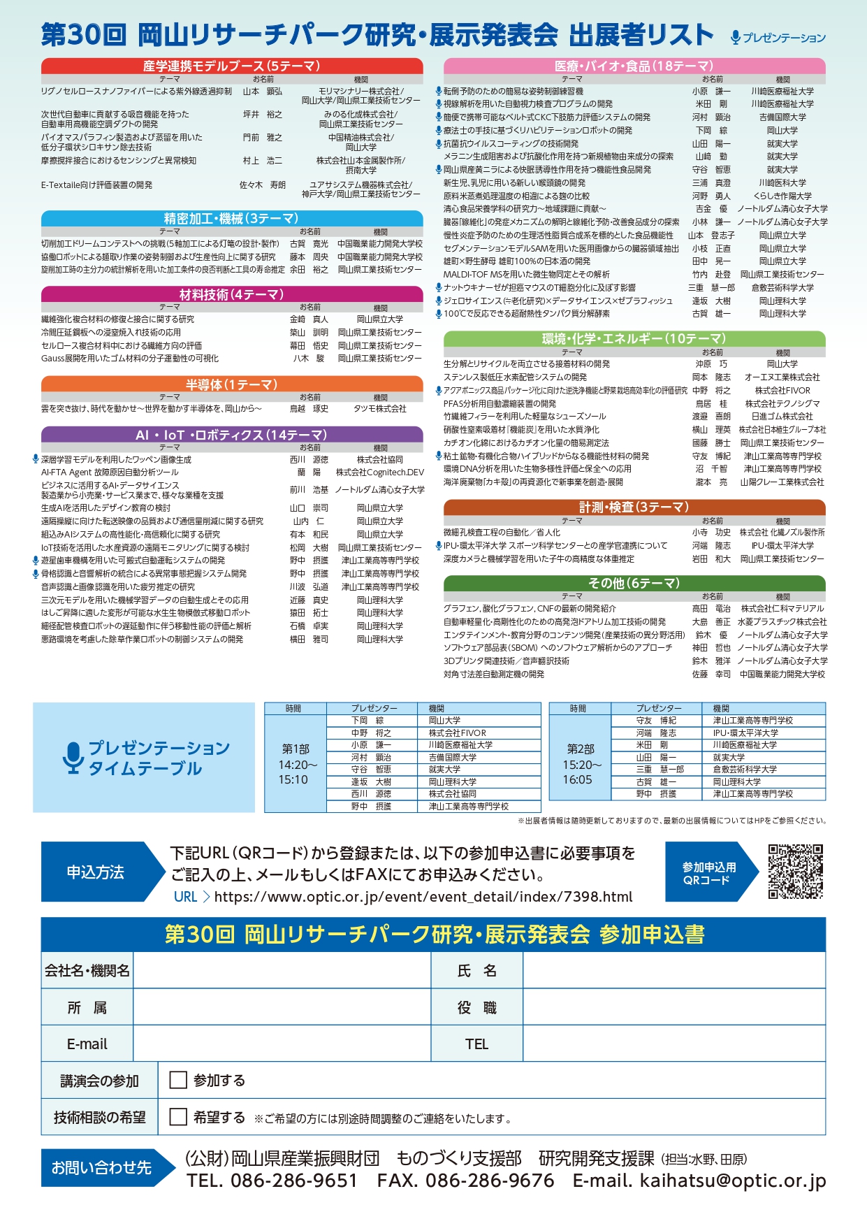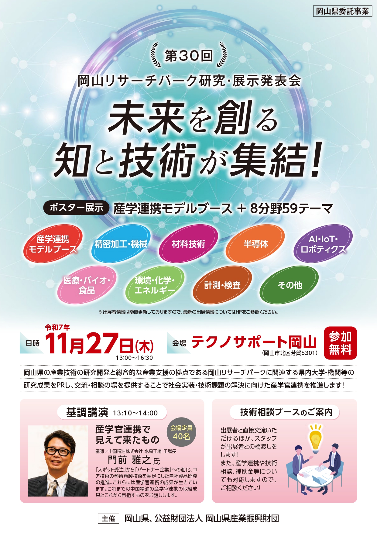 【お知らせ】「岡山リサーチパーク研究・展示発表会」開催について