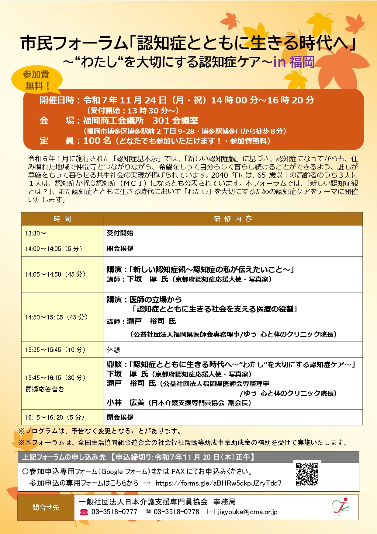 【お知らせ】市民フォーラム「認知症とともに生きる時代へ」開催について